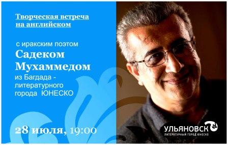 Руководитель программы «Багдад – литературный город ЮНЕСКО», поэт Садек Мохаммед проводит сегодня, 28 июля творческую встречу. Она начнется в 19:00 в библиотеке № 24 (ул. Карла Маркса, 33/2). Вход свободный.