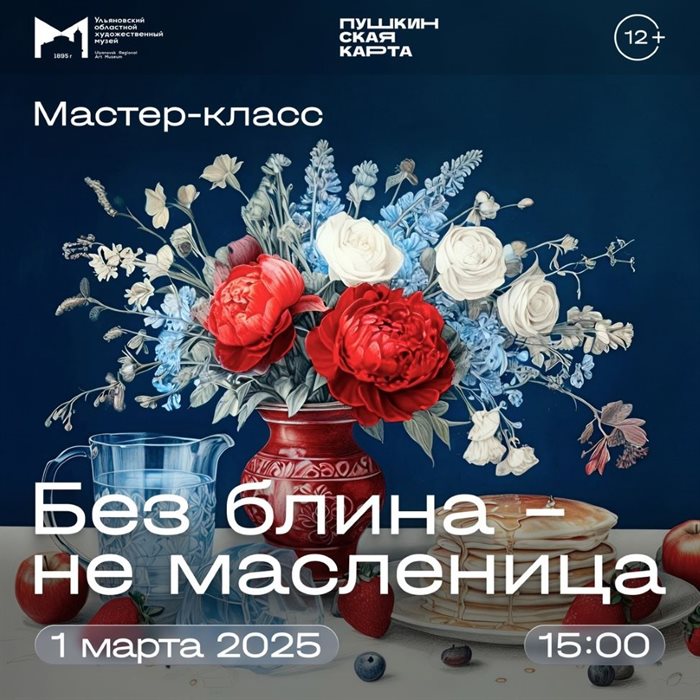 Если блинов нельзя, но очень хочется, то можно … их нарисовать! В Художественном музее запланирован мастер-класс по рисованию «Без блина – не масленица». Вдохновением послужит натюрморт Ивана Хруцкого «Цветы и фрукты» в экспозиции музея. 12+.