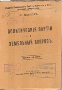 В Симбирской губернии в 1917 году типографией Симбирского Совета рабочих и солдатских депутатов была издана брошюра Петра Павловича Маслова «Политические партии и земельный вопрос», освещающая взгляд существующих на тот момент политических сил на дальнейшую аграрную политику. В преддверии 100-летия революции Государственный архив новейшей истории Ульяновской области предложил журналу «Мономах» опубликовать фрагменты текста брошюры, позволяющие судить о «земельных» программах различных партий. Цитируя издание, «и рабочим, и крестьянам нужно разобраться, которая из партий, желающих блага народа, лучше всего понимает дело, лучше всего может защищать интересы крестьянства и рабочих. Программы и требования этих партий мы дальше и рассмотрим». В публикации текста брошюры сохранена стилистика автора.