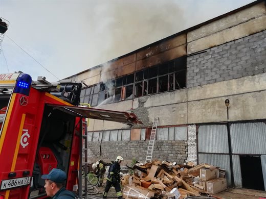 В 09:47 на улице Жуковского в Димитровграде загорелось двухэтажное здание производственного склада.