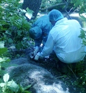 На место выехали сотрудники МЧС и Симбирского центра ветеринарной медицины. Ветеринары отобрали пробы для анализов, а также продезинфицировали место происшествия. Труп направили на утилизацию. В ходе исследования возбудители особо опасных инфекций не выявлены.