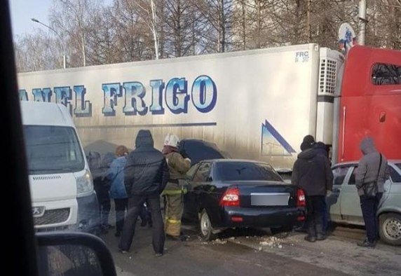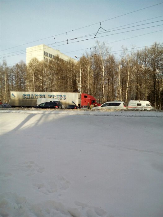 В районе остановки «улица Терешковой» фура устроила массовую аварию на одной из главных транспортных артерий города. Сейчас Московское шоссе полностью перекрыто.