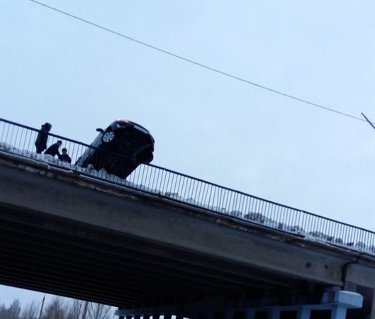 Сегодня, 2 февраля, утром в Заволжском районе Ульяновска произошло ДТП. Как сообщают очевидцы, автомобиль «Киа» повис на ограждении моста и едва не упал вниз.