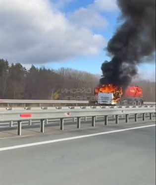 КамАЗ вспыхнул на подъезде к Новому мосту