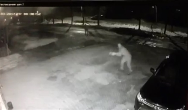 Камера видеонаблюдения четко запечатлела, как поздно ночью на улице Волжской в Заволжье Ульяновска неизвестный вытащил радар.