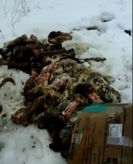 Кровавая дорога и туши животных. Возле поселка Каменка оттаял незаконный скотомогильник (18+)