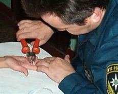 Как оказалось, её девятилетний сын надел на средний палец золотое кольцо, а снять его самостоятельно уже не смог. Прибывшие на помощь спасатели провели поистине ювелирную работу: надкусив кусачками край кольца, они вытащили палец мальчугана из крепких тисков украшения. Маленький мальчик с интересом наблюдал за процессом и стойко выдержал спасательную операцию.