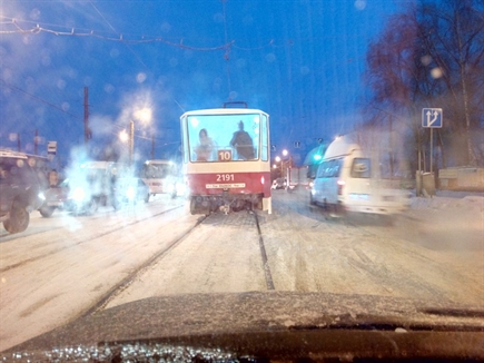 Ледяной дождь в Ульяновске: встали трамваи и машины
