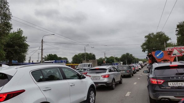 На Димитровградском шоссе пробка. Виной тому строительные работы и авария