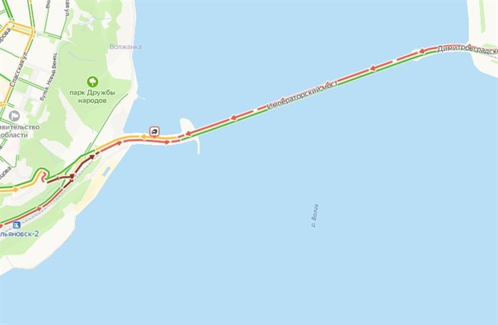Движение как в сторону центра города, так и в сторону Заволжья сильно затруднено.