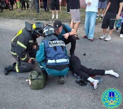 Пострадали двое детей – 13 и 17 лет. Они-то и ехали на мотоцикле. Спасатели оказали пострадавшим первую медицинскую помощь, после чего помогли транспортировать в машину скорой. Оба подростка с различными травмами госпитализированы.