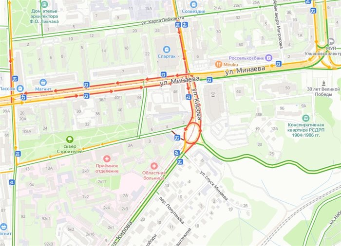 На кольцевом перекрёстке по улице Кирова (у остановки «Речной порт») столкнулись два автомобиля. Движение машин и трамваев как в сторону железнодорожного вокзала, так и в сторону центра города затруднено.