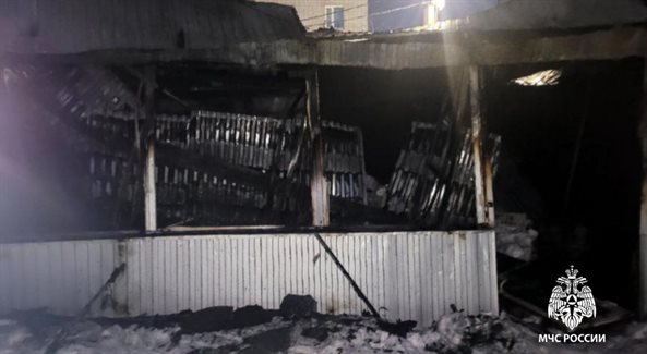 Около 19:20 на улице Кузоватовской возник пожар в неэксплуатируемом строении киоска из ЛМК размером 3×6 метра.