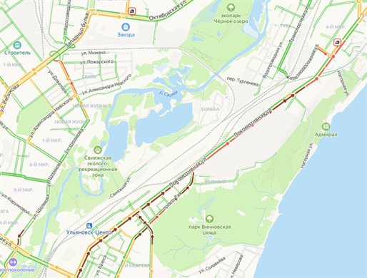 По данным сервиса «Яндекс Карты», причина тому – ДТП на улице Кирова, чуть выше перекрёстка с Карсунской. Локомотивная «стоит» от железнодорожного вокзала по направлению на центр города.
