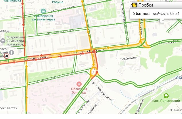 Движение в сторону Засвияжского района Ульяновска сильно затруднено.