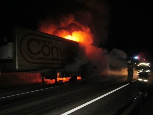 В 03:14 на Московском шоссе загорелся автомобиль МАН с двумя прицепами и рефрежератором. Огнем поврежден один из прицепов.