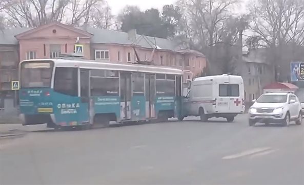 На Московском шоссе столкнулись трамвай и машина скорой помощи