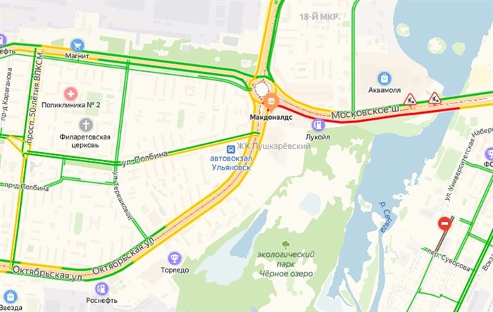 Стоит отметить, что городские службы не могли выбрать времени лучше, чем середина дня. Из-за этого движение по Московскому шоссе в сторону центра города сильно затруднено – образовалась пробка, рассказывает очевидец.