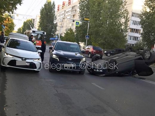 На проспекте Сурова после столкновения с «Тойотой» перевернулся «Ниссан»