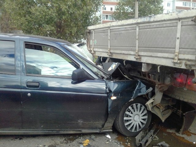 Сегодня около 14.00 на проспекте Туполева в Новом городе Ульяновска произошло ДТП с участием автомобиля марки "Лада Приора" и грузовика. Как сообщают очевидца, легковушка въехала «в зад» полуприцепа, полностью смяв капот. Информация о пострадавших уточняется.