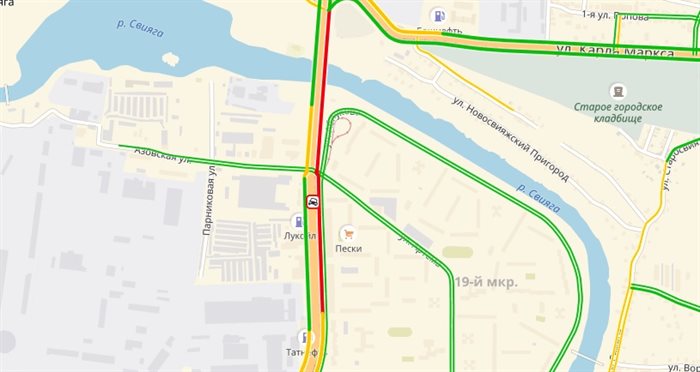 В результате аварии серьёзно затруднено движение на участке от улицы Смычки до моста через Свиягу. Точной информации о виновниках ДТП и пострадавших пока нет. Подробности выясняются.