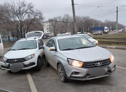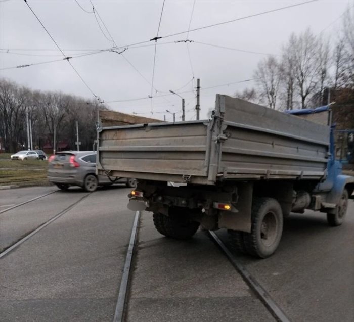 На трамвайных путях в Засвияжье столкнулись три автомобиля