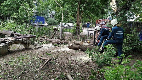 Дежурный экипаж городской поисково-спасательной службы оперативно выехал на улицу Полбина в Засвияжский район города Ульяновска, где от сильного порыва ветра упало дерево.