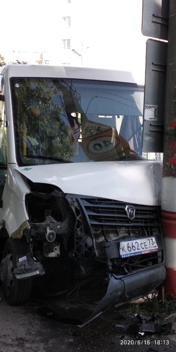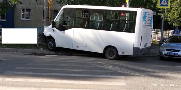 На улице Смычки после столкновения с «Приорой» маршрутка врезалась в столб