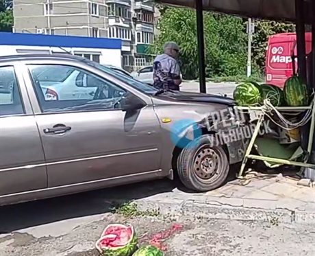 На улице Тельмана «Гранта» врезалась в прилавок с арбузами