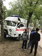 После столкновения с «Ладой-Калиной» карета скорой помощи врезалась в дерево, сообщают в социальных сетях.