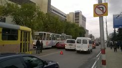 На Железной Дивизии столкнулись несколько авто. Трамваи встали