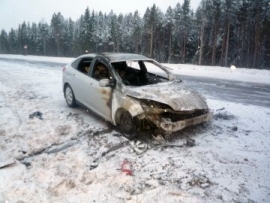 На момент, когда прибыли два расчета МЧС огнем охватило переднюю часть автомобиля. Пострадавших нет. По предварительным данным причиной пожара стал поджог.