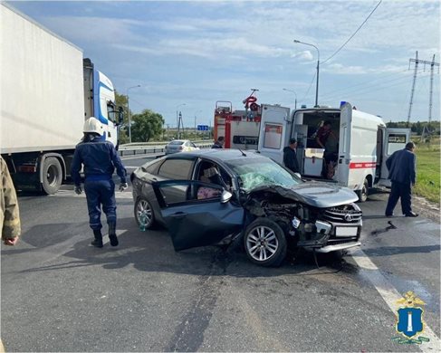 По предварительным данным ГИБДД, в 08:30 на подъезде к Ульяновску от автодороги М-5 «Урал» 60-летний водитель за рулём грузовика «Скания» в составе с полуприцепом «ВО730777» не выбрал безопасную дистанцию и столкнулся с двигавшийся впереди машиной марки «Лада-Веста». После удара легковушка отлетела в столб.