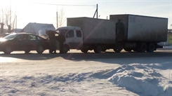 На Димитровградском шоссе возле поселка Мирный столкнулись три машины. По сообщениям очевидцев, легковушка, минигрузовик и КамАЗ «поцеловались» и выстроились в своеобразный ряд от маленькой к большой машине. Пострадавших нет.