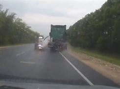 Иномарка выехала на полосу встречного движения, водитель движущегося на встречу ей МАЗа попытался уйти от аварии и свернул в сторону, после чего врезался в фуру. Это стало известно благодаря видео, снятого видеорегистратором и выложенном в сеть «Вконтакте».