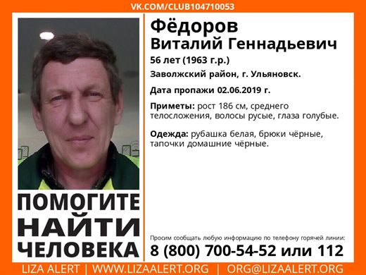 56-летний Виталий Геннадьевич Фёдоров пропал в Заволжском районе.