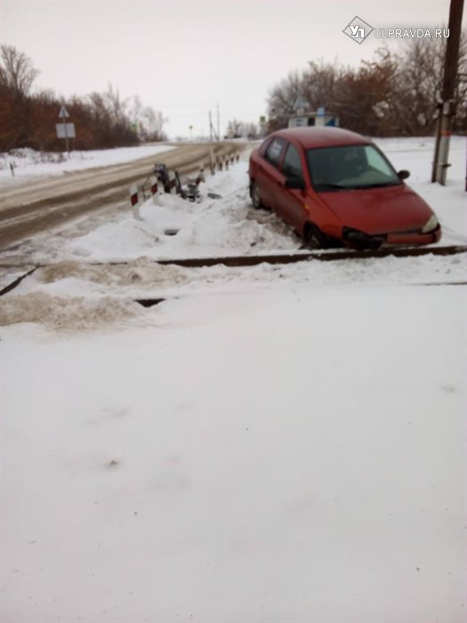 В рабочем посёлке Чердаклы на железнодорожном переезде водитель за рулём «Лады-Калины» не справился с управлением и снёс устройство заграждения переезда, сообщают очевидцы.