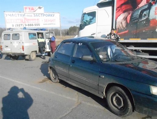 В 17:09 на трассе посёлок Мирный - село Архангельское столкнулись автомобиль ВАЗ-2110 и грузовик «Вольво». Есть пострадавший.