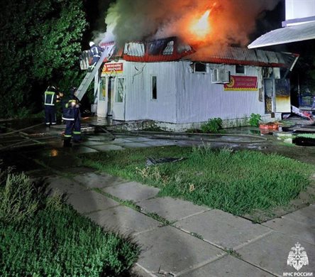 Поздно вечером на улице Строителей в Димитровграде загорелся продуктовый павильон (отдельно стоящее здание) общей площадью 50 квадратных метров.