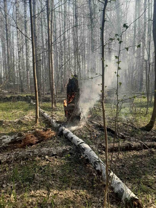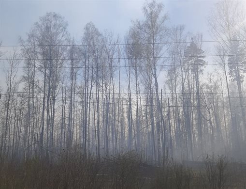 В Инзенском районе горящий лес тушат с помощью поезда и вертолётов