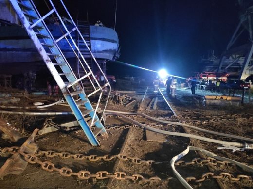 В 04:25 в селе Криуши загорелось судно, которое находилось на ремонте на берегу.