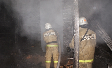 В результате пожара огнем повреждены стена и потолочные перекрытия на площади 8 кв.м. Причина пожара - короткое замыкание. По предварительным данным, пострадавших нет.