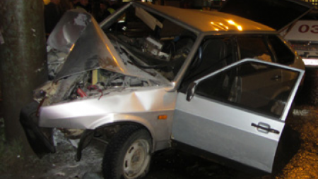 В Мелекесском районе «девятка» съехала в кювет и врезалась в дерево