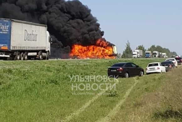 «По предварительной информации, в 14:00 на трассе М-5 «Урал» водитель за рулём грузового автомобиля «Скания» выехал на полосу для встречного движения и столкнулся с авто КамАЗ, а затем с ещё одним автомобилем марки «ДАФ». После этого «Скания» съехала в кювет и загорелась. Водитель этой фуры погиб. Личность его устанавливается. Проводится проверка», - сообщил корреспонденту портала ulpravda.ru старший референт ОИОС УМВД России по Ульяновской области Сергей Сергеенко.