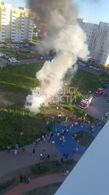 Пока пожар тушили, собралась толпа зевак, все снимали видео.
