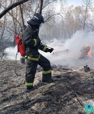 В 13:05 старшему оперативному дежурному ЕДДС города поступило сообщение о возгорании сухой травы и заброшенных садовых домиков по улице Кинологическая в селе Подгорная Каменка на площади четыре гектара.