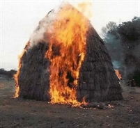 В посёлке Земляничный Барышского района Ульяновской области на ул. Плодопитомническая 19 ноября поздно вечером сгорел стог сена.