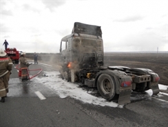 На трассе М-5 в р.п. Новоспасское Ульяновской области 19 мая в десятом часу утра произошло загорание грузового автомобиля МАН.