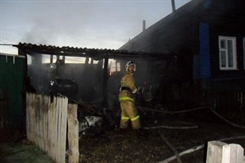 В результате пожара огнем повреждена кровля жилого деревянного дома размером 6х8 м на площади 6 кв.м и обшивка стены на площади 12 кв.м. Вследствие позднего обнаружения сарай был уничтожен огнем полностью. Причина пожара устанавливается.