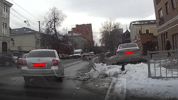 Во второй половине дня на пересечении улиц Красноармейской и Красногвардейской столкнулись два автомобиля. Один из них после удара отлетел на ограждение дороги и снёс его.
